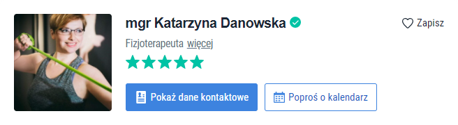 Jestem fizjoterapeutką i instruktorką zajęć ruchowych. Ukończyłam Warszawski Uniwersytet Medyczny, a doświadczenie zawodowe zdobywam nieprzerwanie od 2010 roku.